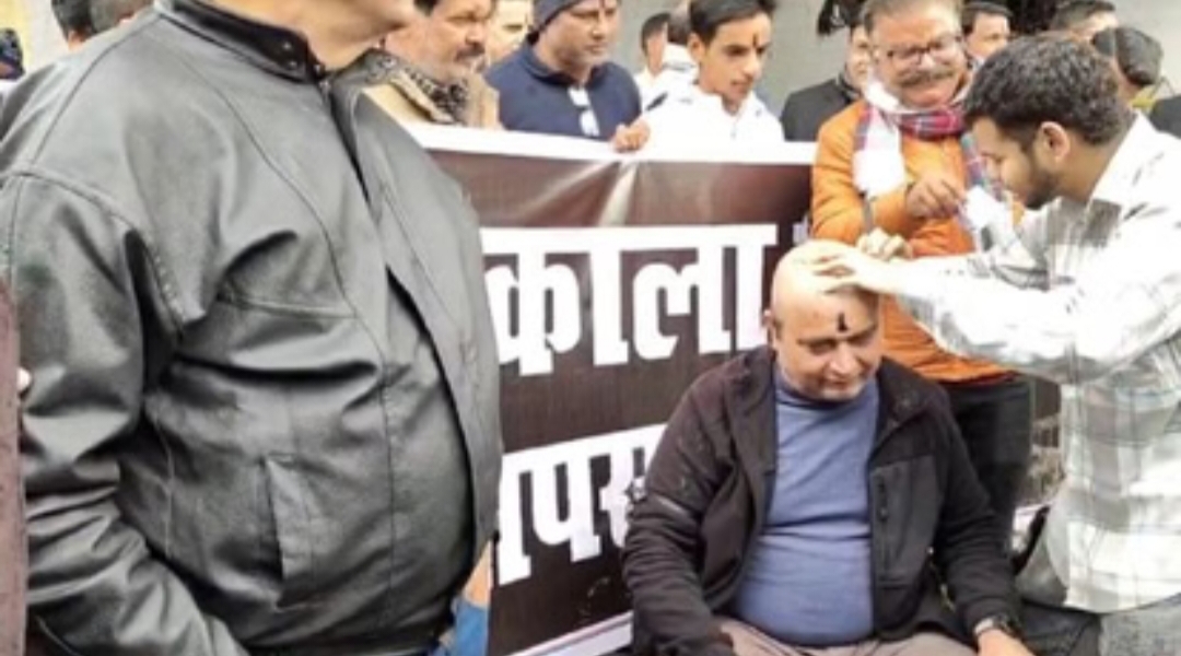 पीलीभीत। विश्वविद्यालय अनुदान आयोग (यूजीसी) द्वारा लागू किए गए नए नियमों के विरोध में बुधवार को पीलीभीत जिले में सवर्ण समाज से जुड़े लोगों ने जोरदार प्रदर्शन किया। समाजसेवी हरिओम वाजपेई ने विरोध स्वरूप अपना मुंडन कराकर आक्रोश व्यक्त किया। प्रदर्शनकारियों ने काला टीका लगाकर प्रदेश और केंद्र सरकार के खिलाफ नारेबाजी की और नियमों को तत्काल वापस लेने की मांग की।