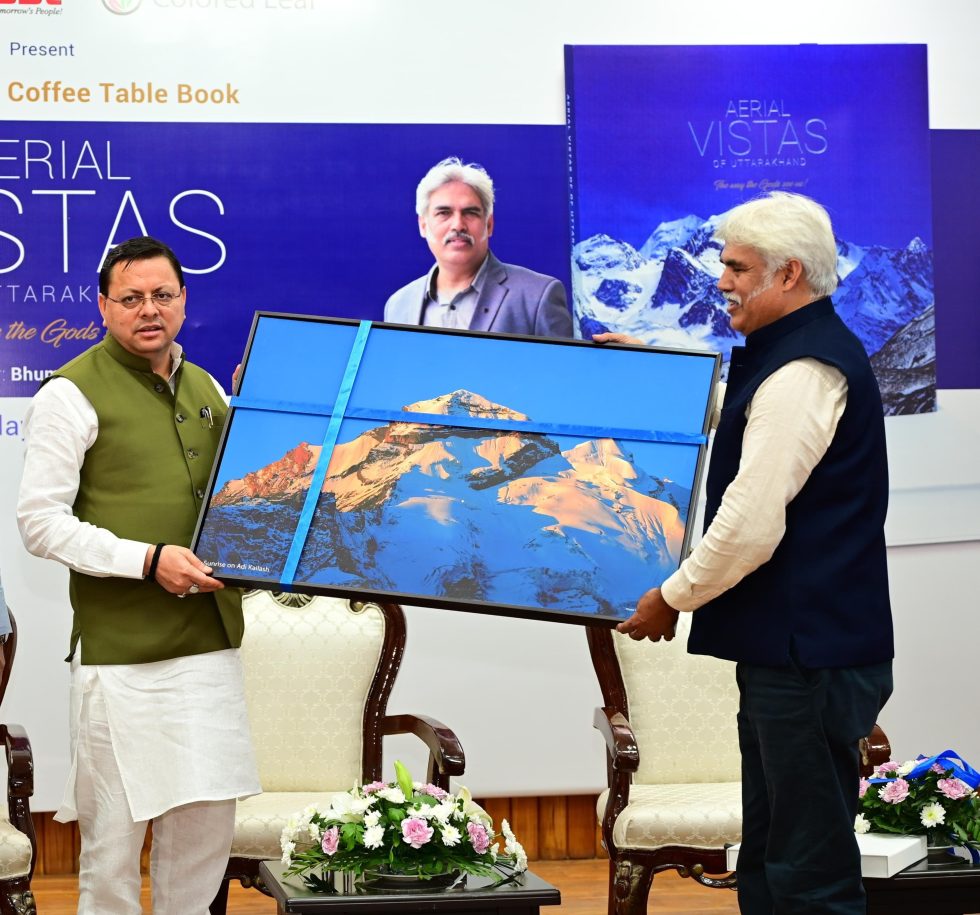 मुख्यमंत्री ने मुख्यमंत्री आवास में फोटोग्राफर भूमेश भारती की कॉफी टेबल बुक “एरियल विस्टाज़ ऑफ उत्तराखंड” का लोकार्पण किया। उन्होंने कहा कि भूमेश भारती ने 15 वर्षों की साधना से उत्तराखंड की प्रकृति और संस्कृति को फोटोग्राफी के माध्यम से अद्वितीय रूप में प्रस्तुत किया है। यह पुस्तक न केवल राज्य की नैसर्गिक सुंदरता को दर्शाती है, बल्कि पर्यटकों को उत्तराखंड की ओर आकर्षित भी करेगी।